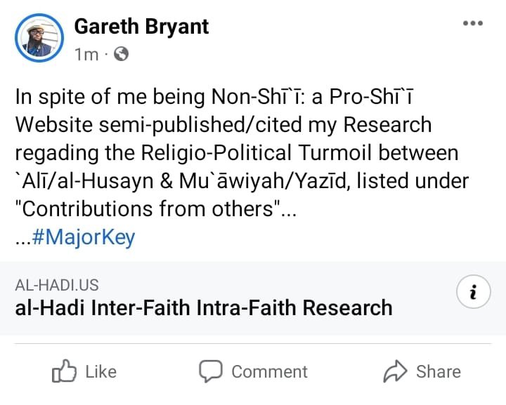 It’s still surreal for me to be this fortunate, for them to break their own Religio-Sectarian Mold & to allow someone not of their Religio-Sectarian Ilk to have a Space/Place via their Platform. That’s a True-Sign of at-Tawādhi`/Humility&al-Balāghah/Maturity (2-Things which any/every Muslim is Religio-Required to possess/manifest), but Most-Muslims don’t have both of these nor want to have both either…as I always tell People: Apathy is worse than Ignorance. I view this as a Significant-Indication that my Research is respected&appreciated, and I’m very grateful to Allah for that.