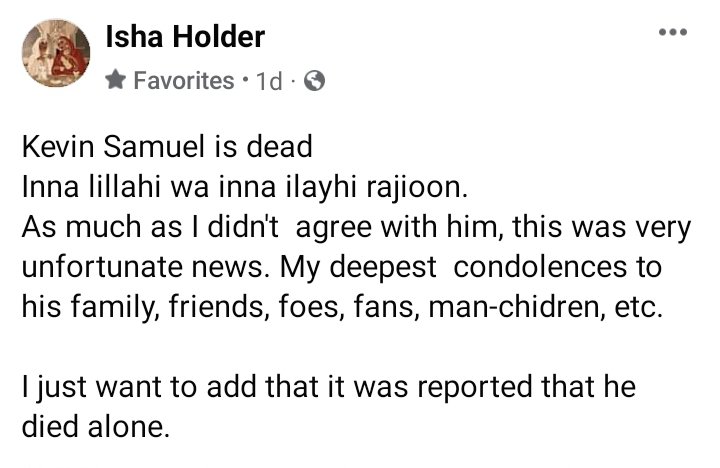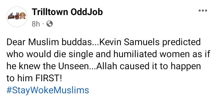 The above/aforementioned are simply some of Countless-Posts, which Certain-Muslims have taken it upon themselves to drag Kevin Samuels into the Dirt, for no other Reason than them agreeing with the Social-Commentaries of Kevin Samuels. Disagreeing with Kevin Samuels: that’s not inherently any Problem. I myself personally never agreed with everything Kevin Samuels pontificated/promoted. Yet, also, what I won’t do is mock their Death, speak as though they’re not even a Human-Being. Just as Muhammad (Peace be upon them) stated: