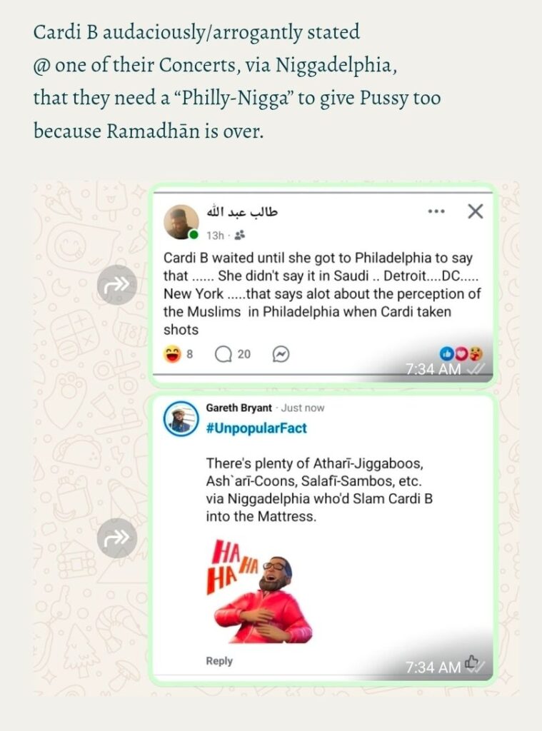 There’s literally Certain-Muslims whom think Sucka-Shit like this is a “Flex”, and will still Dick-Ride Cardi B inspite of them literally mocking one of the Arkān/Pillars of al-Islām.