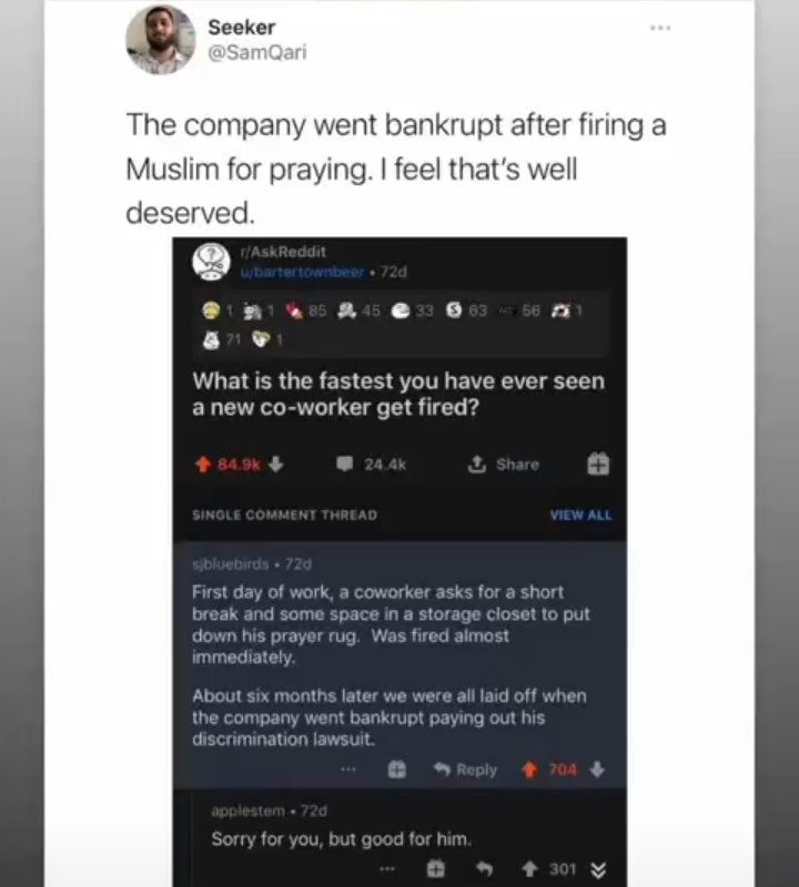 The Fact that People are actually surprised at this is honestly worse. Ironically though, this literally is no different than/from Donald Trump pontificating/claiming that: “I think Islām hates us.” via their CNN-Interview with Anderson Cooper…a Statement they’ve never apologized for by the way.