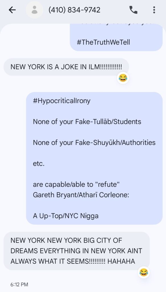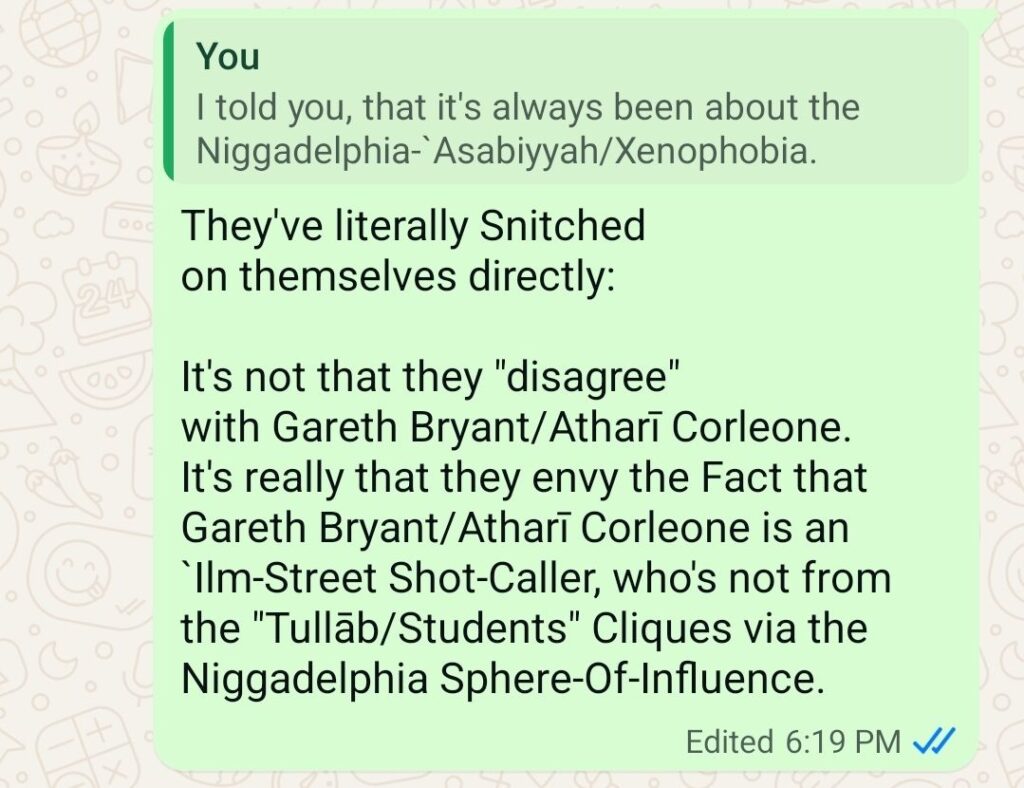 The Fake-Tullāb/Students of Knowledge and the Fake-Shuyūkh/Authorities of al-Islām, via the Niggadelphia Sphere-Of-Influence, have summarily banded together (a Satanic-Alliance via al-`Asabiyyah [Xenophobia]) to attempt to “Blackball” Gareth Bryant (Atharī Corleone). They’ve attempted many Dastardly-Manāhij/Methods to accomplish this. I’ll be detailing some of their Dastardly-Manāhij.