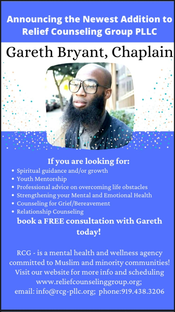 Gareth Bryant has been a Chaplain/Imām since 1435, A.H./2014, C.E. They studied Islamic-Studies & the Arabic-Language under Siraj Wahhaj (Imām of Masjid at-Taqwa), Fiqh (Islāmic Legal-Analysis) under Shakiel Humayun (Founder of Foundation for Knowledge and Development [FKAD]), Sīrah (Biography/Life of Muhammad) & Mustalah-ul-Hadith (Authentication of Narration), under Abdul-Rahman Khan (Executive-Member of the Fiqh Council of North America), `Ulūm-ut-Tafsīr (Qur’ānic-Commentary Science) as an Online-Student of Bilal Philips (Founder of International Open University [IOU]).