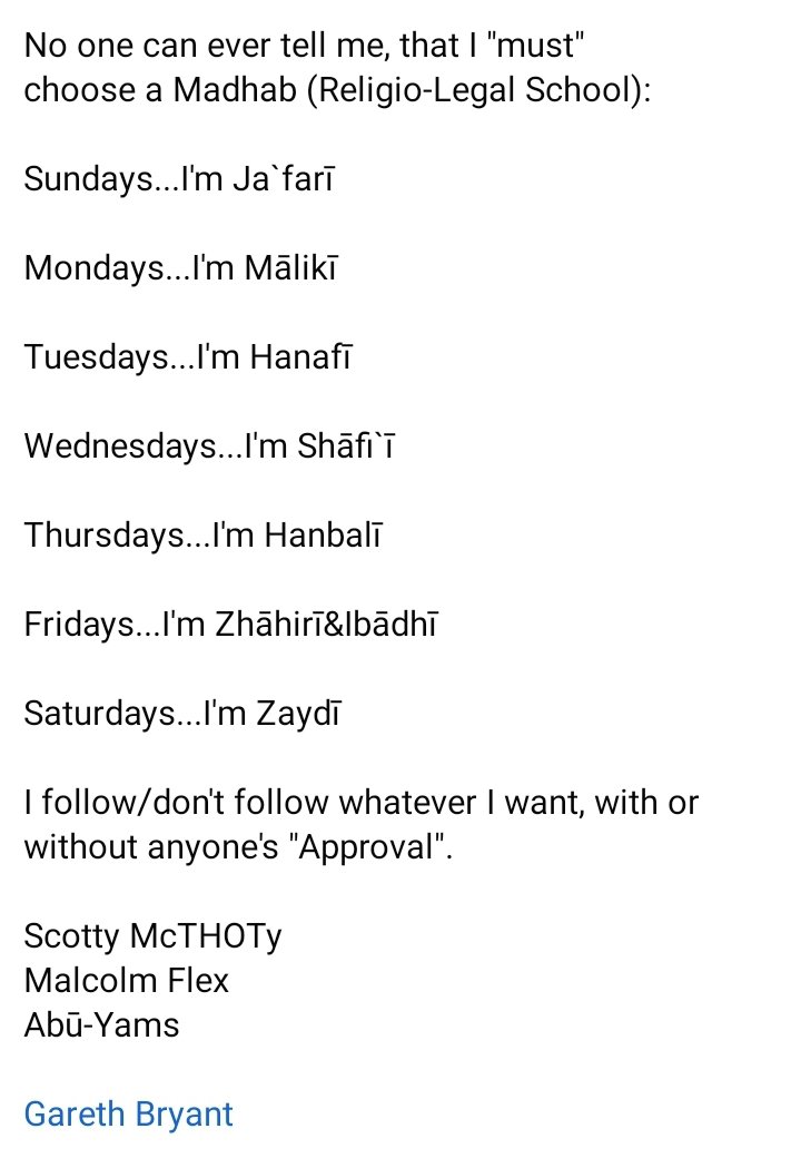 c. There’s absolutely 0 Revelatory/Textual-Farīdhah (Islāmic-Mandate) to comply with any Madhab/Religio-Legal School.