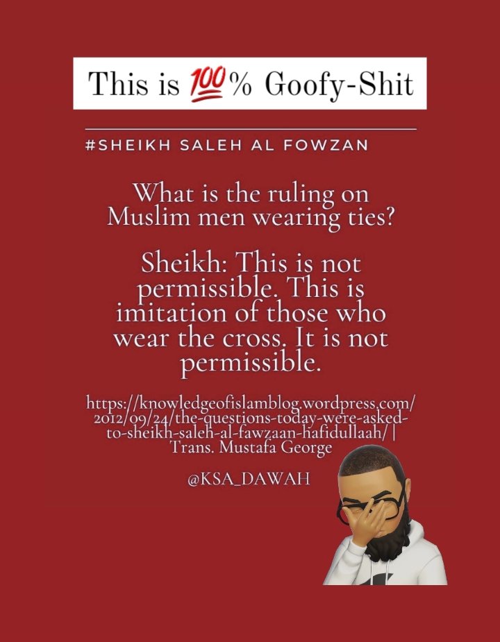 This is one of Countless-Types/Kinds of Sucka-Shit Certain-Muslims attempted to force-feed me when I was a Younger-Muslim. This-Shit is Super-Wack. There’s literally 0 Historical-Evidence that Neck-Ties resemble/commemorate as-Salīb (the Judeo-Christian Crucifix). This is Sucka-Shit & just like the Ole-Saying goes: “If you co-sign Sucka-Shit you’re a Sucka too.”.