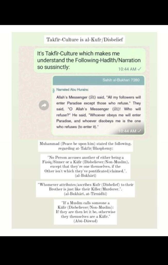 Stay with me…I’m going to make it make Sense. I’ll be deliberately focusing the Context upon the Mas’alah/Issue of Unjust-Takfīr/Blasphemy & Takfīr-Culture.