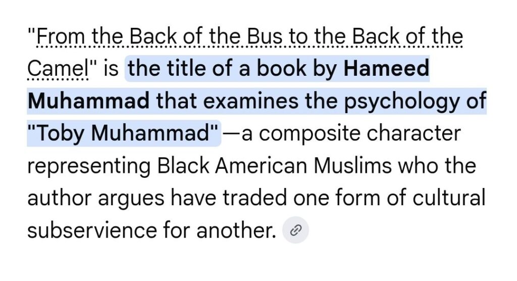 The Author of the “Back of the Bus to Back of the Camel” Concept, Hamīd Muhammad, is a Victim/Casualty of Sandface themselves. They don an Arabic-Name via the Pseudo-Auspices of the “Muslim/Islāmic-Name” Mythos/Fallacy which: